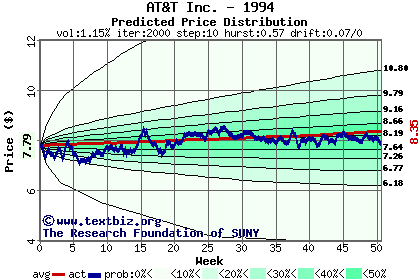 The following graph plots the year-to-date performance of the stock for 1994 compared to the probability calculated by a random walk model.