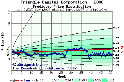 The following graph plots the year-to-date performance of the stock for 2008 compared to the probability calculated by a random walk model.