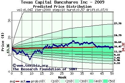 The following graph plots the year-to-date performance of the stock for 2009 compared to the probability calculated by a random walk model.