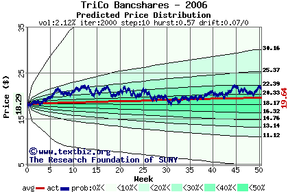 The following graph plots the year-to-date performance of the stock for 2006 compared to the probability calculated by a random walk model.