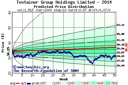 The following graph plots the year-to-date performance of the stock for 2014 compared to the probability calculated by a random walk model.