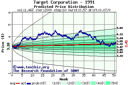 The following graph plots the year-to-date performance of the stock for 1991 compared to the probability calculated by a random walk model.