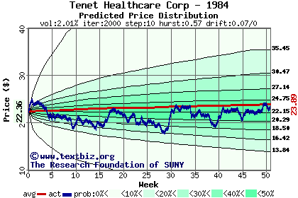 The following graph plots the year-to-date performance of the stock for 1984 compared to the probability calculated by a random walk model.