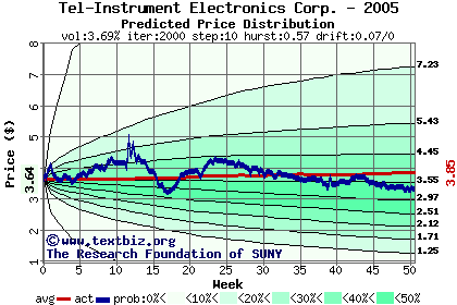 The following graph plots the year-to-date performance of the stock for 2005 compared to the probability calculated by a random walk model.