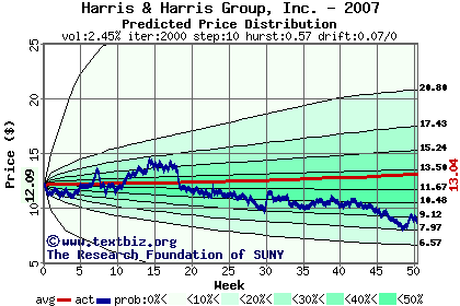 The following graph plots the year-to-date performance of the stock for 2007 compared to the probability calculated by a random walk model.