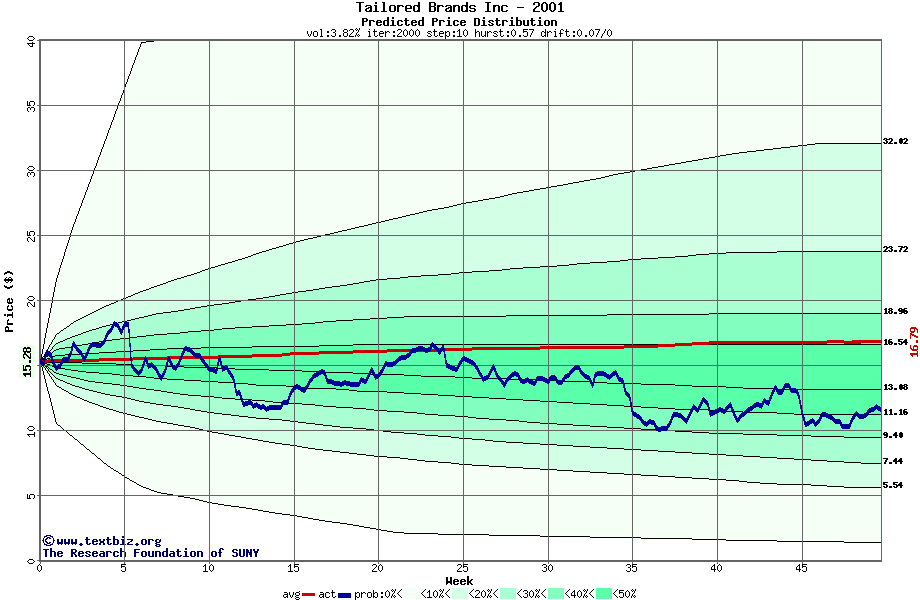 The following graph plots the year-to-date performance of the stock for 2001 compared to the probability calculated by a random walk model.
