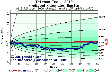 The following graph plots the year-to-date performance of the stock for 2012 compared to the probability calculated by a random walk model.