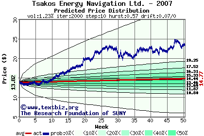 The following graph plots the year-to-date performance of the stock for 2007 compared to the probability calculated by a random walk model.