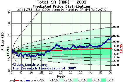 The following graph plots the year-to-date performance of the stock for 2003 compared to the probability calculated by a random walk model.