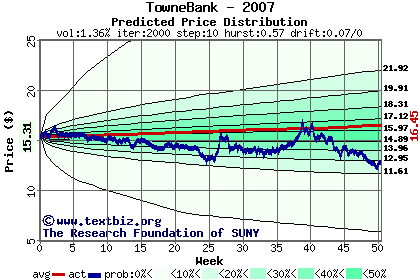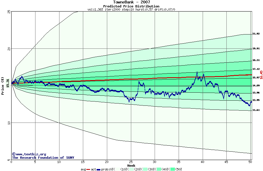 The following graph plots the year-to-date performance of the stock for 2007 compared to the probability calculated by a random walk model.