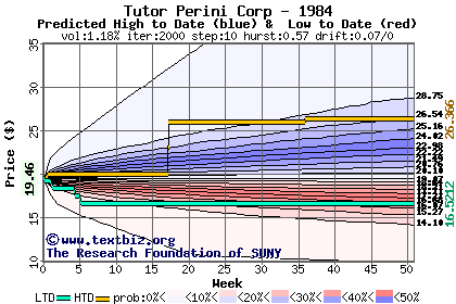 The following graph plots the year-to-date performance of the stock for 1984 compared to the probability calculated by a random walk model.