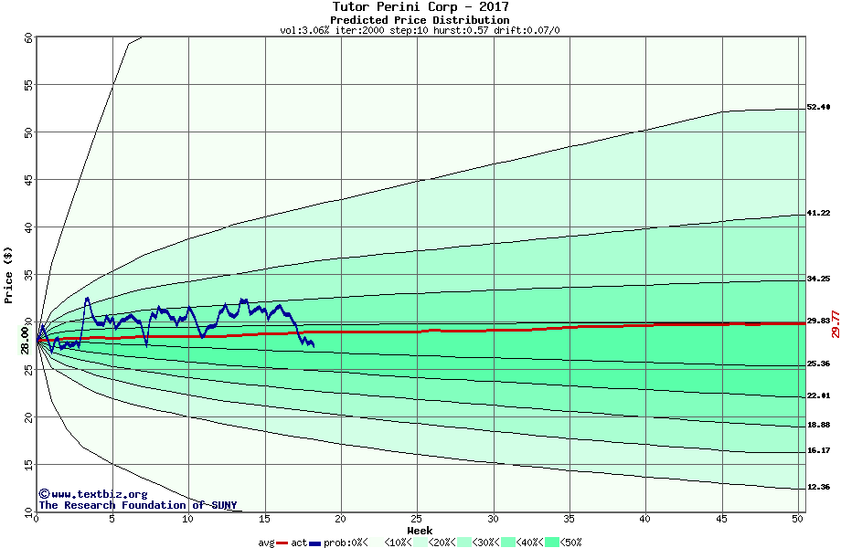 The following graph plots the year-to-date performance of the stock for 2017 compared to the probability calculated by a random walk model.