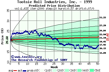 The following graph plots the year-to-date performance of the stock for 1999 compared to the probability calculated by a random walk model.