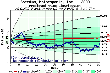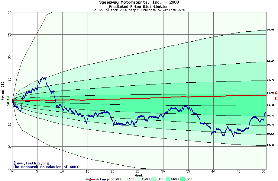 The following graph plots the year-to-date performance of the stock for 2000 compared to the probability calculated by a random walk model.