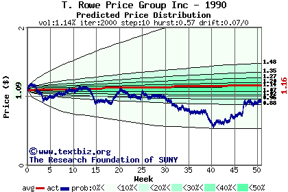 The following graph plots the year-to-date performance of the stock for 1990 compared to the probability calculated by a random walk model.