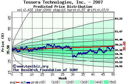 The following graph plots the year-to-date performance of the stock for 2007 compared to the probability calculated by a random walk model.
