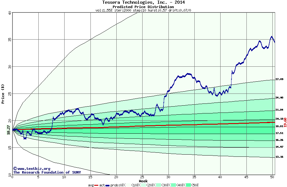 The following graph plots the year-to-date performance of the stock for 2014 compared to the probability calculated by a random walk model.