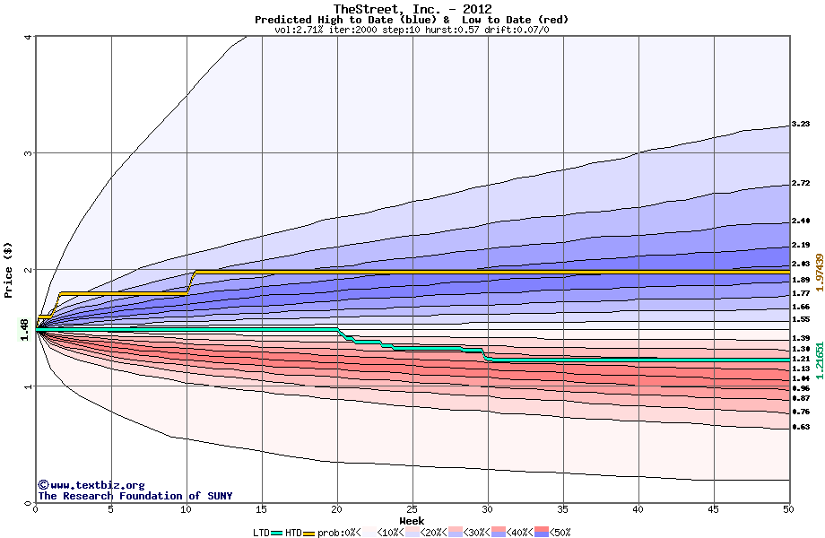 The following graph plots the year-to-date performance of the stock for 2012 compared to the probability calculated by a random walk model.