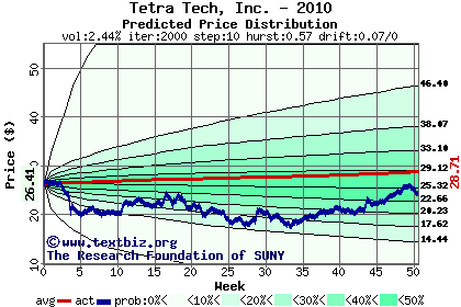 The following graph plots the year-to-date performance of the stock for 2010 compared to the probability calculated by a random walk model.