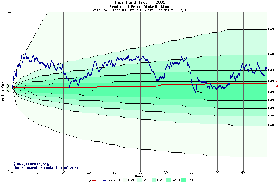 The following graph plots the year-to-date performance of the stock for 2001 compared to the probability calculated by a random walk model.