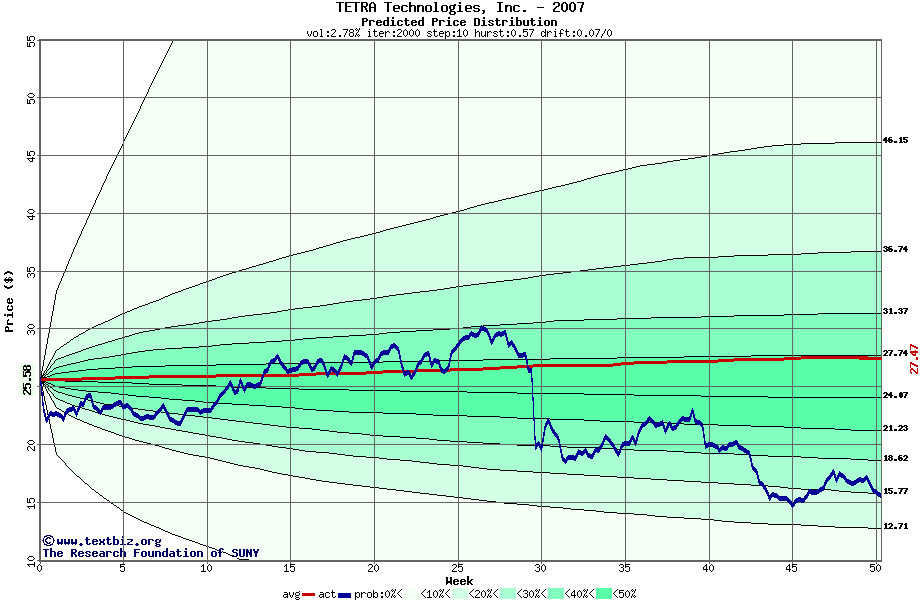 The following graph plots the year-to-date performance of the stock for 2007 compared to the probability calculated by a random walk model.