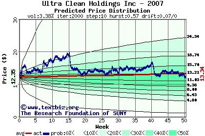 The following graph plots the year-to-date performance of the stock for 2007 compared to the probability calculated by a random walk model.