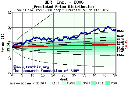 The following graph plots the year-to-date performance of the stock for 2006 compared to the probability calculated by a random walk model.