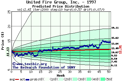 The following graph plots the year-to-date performance of the stock for 1997 compared to the probability calculated by a random walk model.