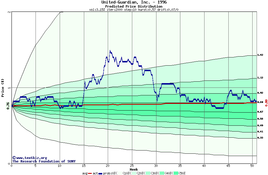 The following graph plots the year-to-date performance of the stock for 1996 compared to the probability calculated by a random walk model.