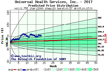 The high to date and low to date prices of the stock plotted against a random walk model for 2017 (what's this?).