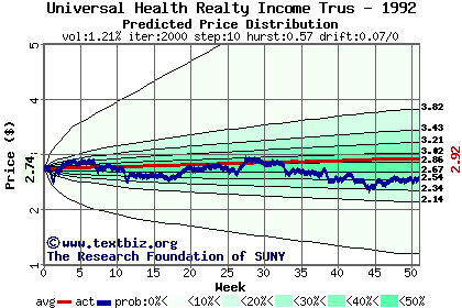 The following graph plots the year-to-date performance of the stock for 1992 compared to the probability calculated by a random walk model.