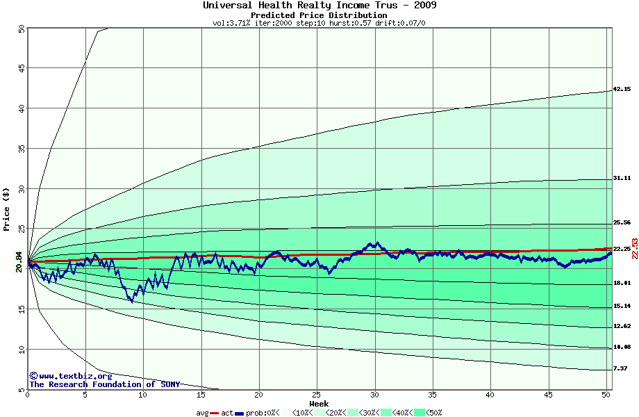 The following graph plots the year-to-date performance of the stock for 2009 compared to the probability calculated by a random walk model.