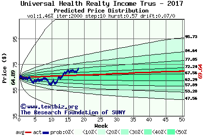 The high to date and low to date prices of the stock plotted against a random walk model for 2017 (what's this?).