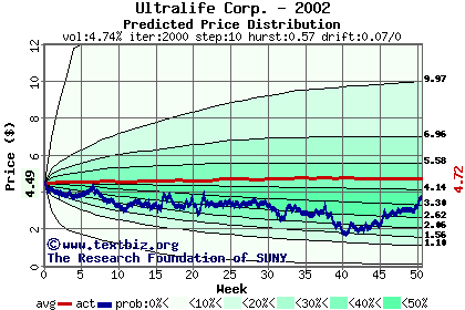 The following graph plots the year-to-date performance of the stock for 2002 compared to the probability calculated by a random walk model.