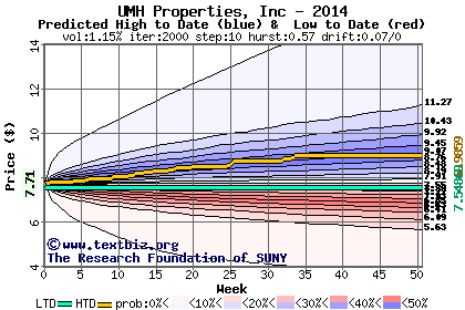 The following graph plots the year-to-date performance of the stock for 2014 compared to the probability calculated by a random walk model.