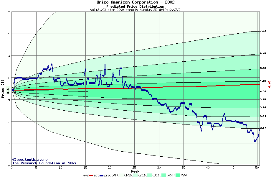 The following graph plots the year-to-date performance of the stock for 2002 compared to the probability calculated by a random walk model.