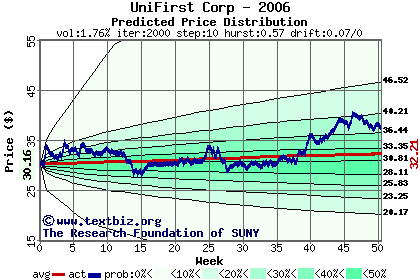 The following graph plots the year-to-date performance of the stock for 2006 compared to the probability calculated by a random walk model.