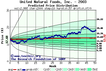 The following graph plots the year-to-date performance of the stock for 2003 compared to the probability calculated by a random walk model.