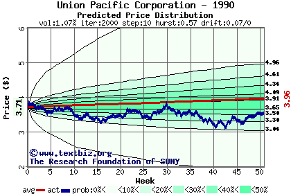 The following graph plots the year-to-date performance of the stock for 1990 compared to the probability calculated by a random walk model.