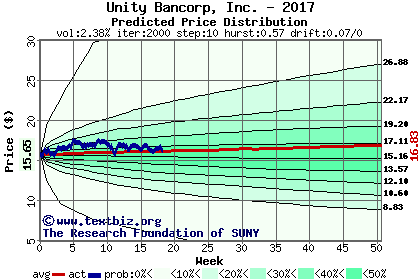 The following graph plots the year-to-date performance of the stock for 2017 compared to the probability calculated by a random walk model.