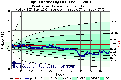 The following graph plots the year-to-date performance of the stock for 2001 compared to the probability calculated by a random walk model.