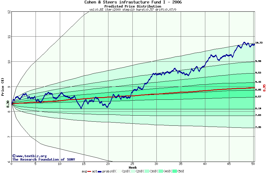 The following graph plots the year-to-date performance of the stock for 2006 compared to the probability calculated by a random walk model.
