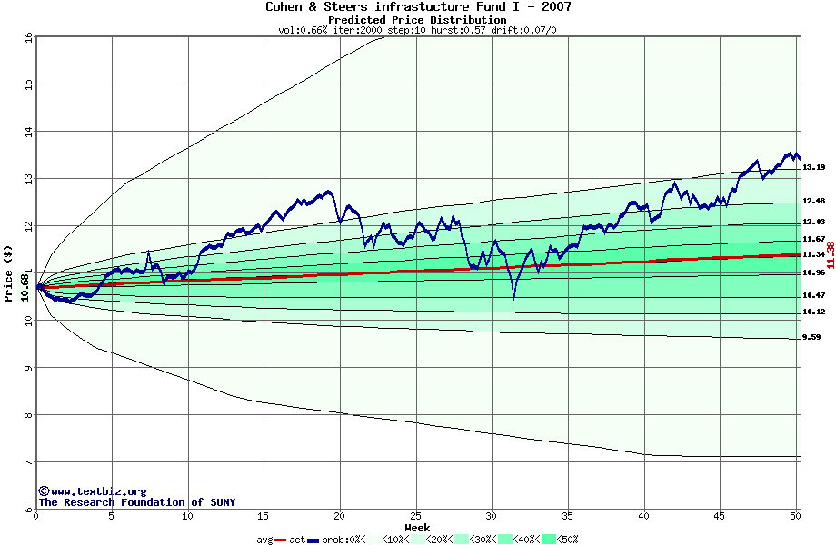 The following graph plots the year-to-date performance of the stock for 2007 compared to the probability calculated by a random walk model.