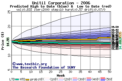 The high to date and low to date prices of the stock plotted against a random walk model for 2006 (what's this?).