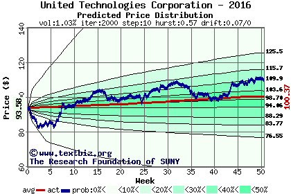 The following graph plots the year-to-date performance of the stock for 2016 compared to the probability calculated by a random walk model.