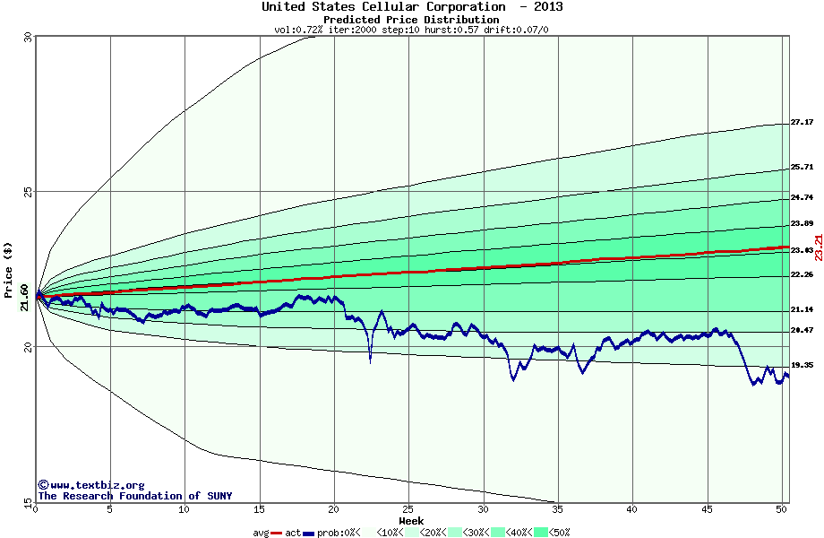 The following graph plots the year-to-date performance of the stock for 2013 compared to the probability calculated by a random walk model.