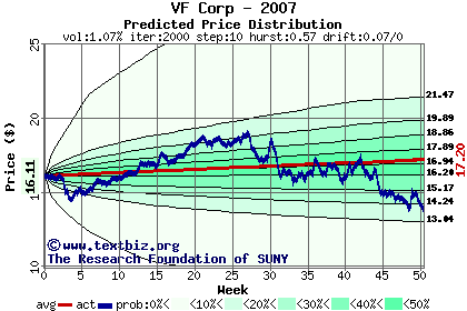 The following graph plots the year-to-date performance of the stock for 2007 compared to the probability calculated by a random walk model.