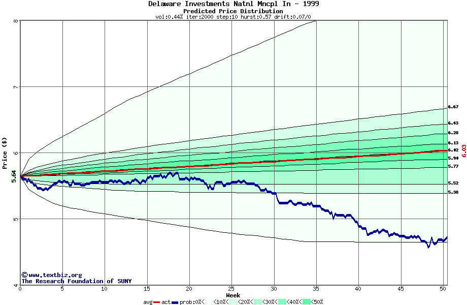 The following graph plots the year-to-date performance of the stock for 1999 compared to the probability calculated by a random walk model.