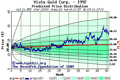 The following graph plots the year-to-date performance of the stock for 1992 compared to the probability calculated by a random walk model.