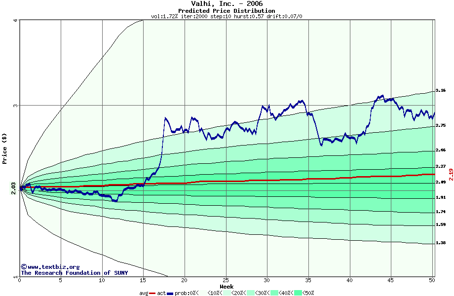 The following graph plots the year-to-date performance of the stock for 2006 compared to the probability calculated by a random walk model.